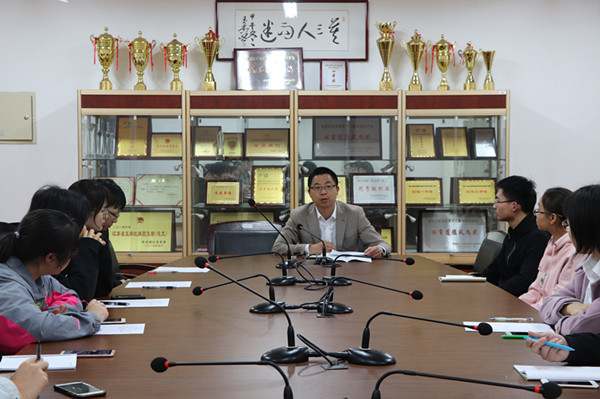 座谈会上,陈老师首先进行了简短的自我介绍,并提出本次座谈会主题为“认清现实,看清自我,全力以赴搞好专业学习”。陈老师从自己对于数字出版专业的认识讲起,分享了自己的求学经历,鼓励大家要真正去认识自己,学好专业,做出合理的人生规划。针对同学们对于考研及就业方面的困惑,陈老师一一解答,帮助大家确立未来考研方向,并对本专业就业要求做了具体的指导。陈老师希望大家,利用大学时光多多掌握专业技能,从技术和实践锻炼上,不断充实和提升自己。