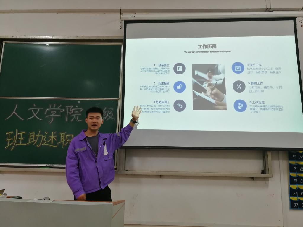 十五位辅导员助理精心准备了个人述职材料。他们结合着精心制作的PPT,对担任辅导员助理期间开展的各项工作,进行了详细的总结。他们或用详实的记录,或用丰富的图片,或用真挚的话语,回顾梳理了一年以来的助理工作内容。大家不约而同地表示:正是这些工作,让他们与2018级新生们建立了深厚的感情,并通过辅导员助理的锻炼,收获了大学成长的宝贵财富。评审会上,大家也就工作中出现的问题进行了探讨和反思。