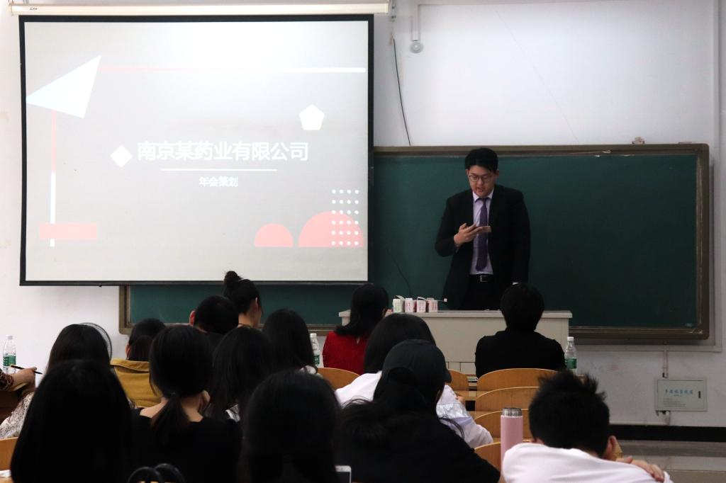 本次大赛,经过各班级初赛决选出五支队伍,进入院决赛。总决赛的主题是为“南京某药业有限公司年会策划方案”,参赛的五个小组根据抽签顺序,依次上台展示了精心设计的年会方案。各个小组的想法侧重不同,各有亮点。第一组的策划案对年会的晚宴的做了精心的安排;而第三组同学的策划中,将安保、人员通知都纳入年会的后勤事项中,方案实施可行性最高。同聚时光公司代表赵经理对各组的表现,进行了精彩的点评。最终,以16行政管理班孙甜甜为队长的第五组以均分85.5夺得了本次比赛的第一名。