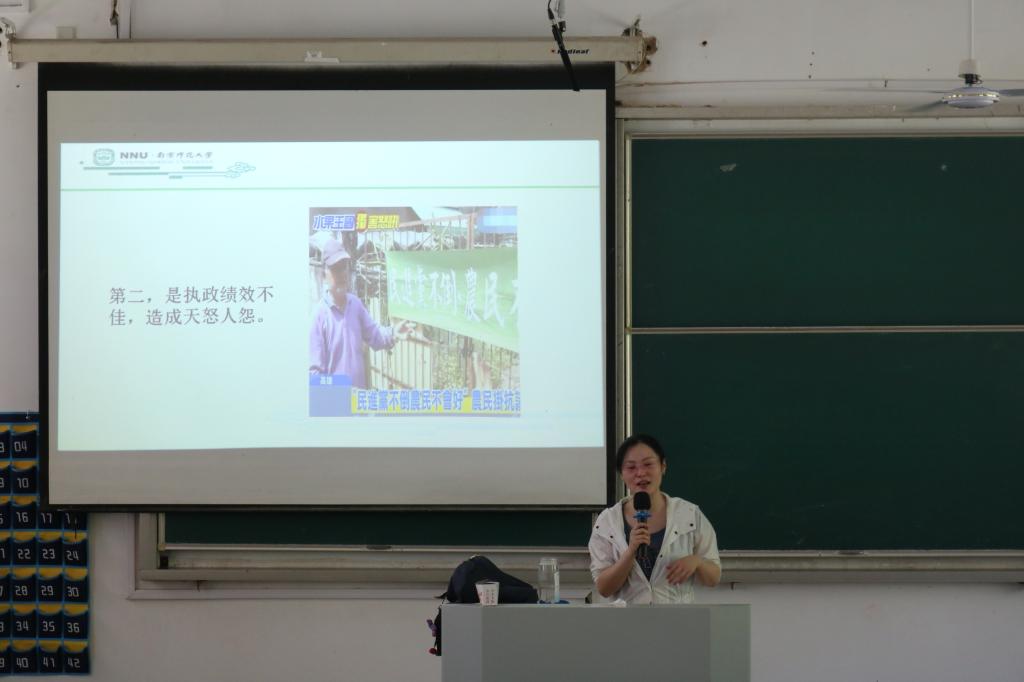 讲座伊始,潘赐璇老师向大家详细介绍了台湾“九合一”选举的具体内容,分析了其选举方式的变化原因和特点。随后,通过“习马会议”和“九二共识”的相关材料,潘老师向同学们总结了当前的政治形势以及当下的格局特征,并阐述了民众不支持民进党,而支持国民党的几点原因。最后,潘老师讲述了中国对台独的坚决抵制立场,论述了两岸关系的未来走向。讲座中,同学们认真听讲,做好学习笔记。