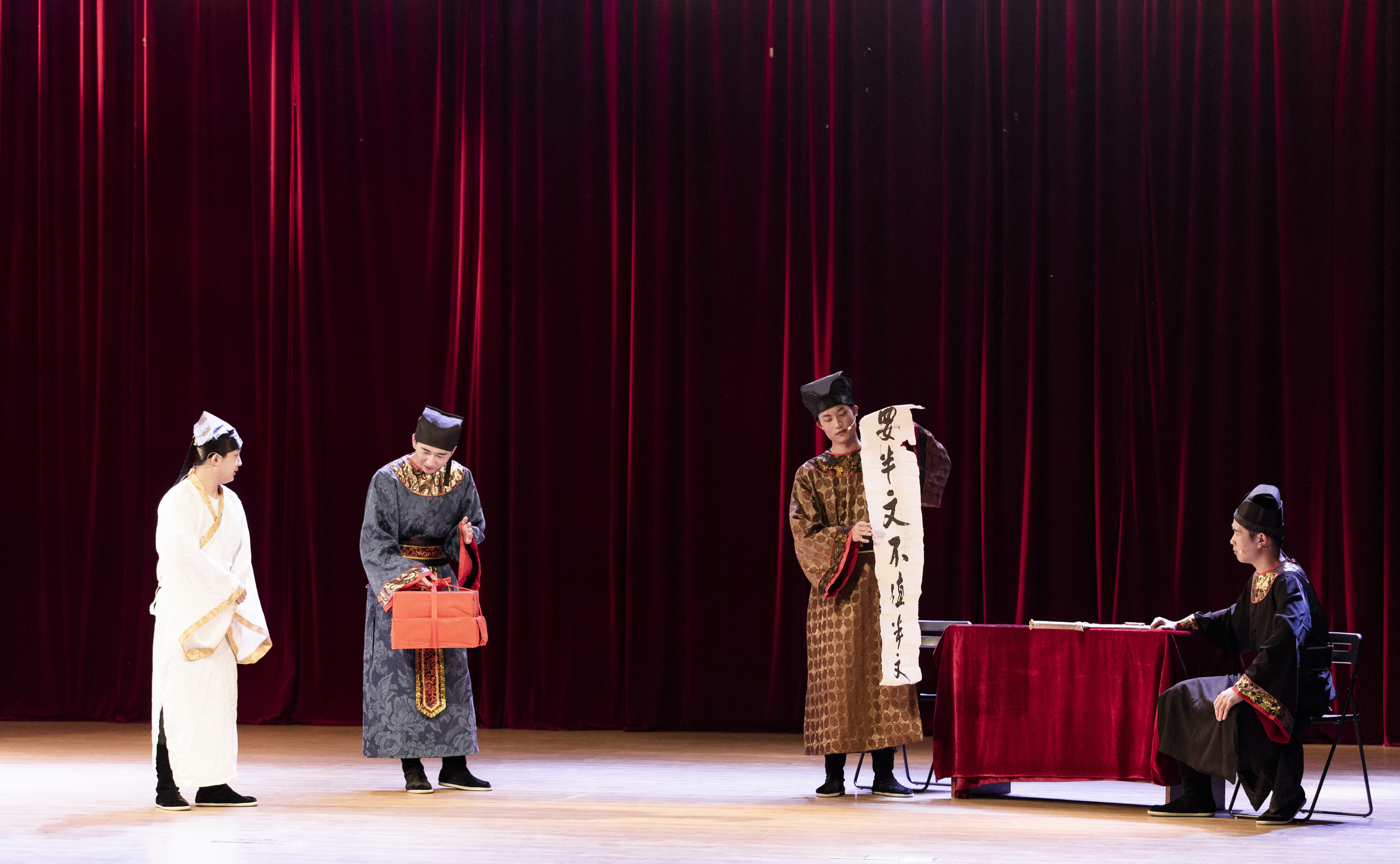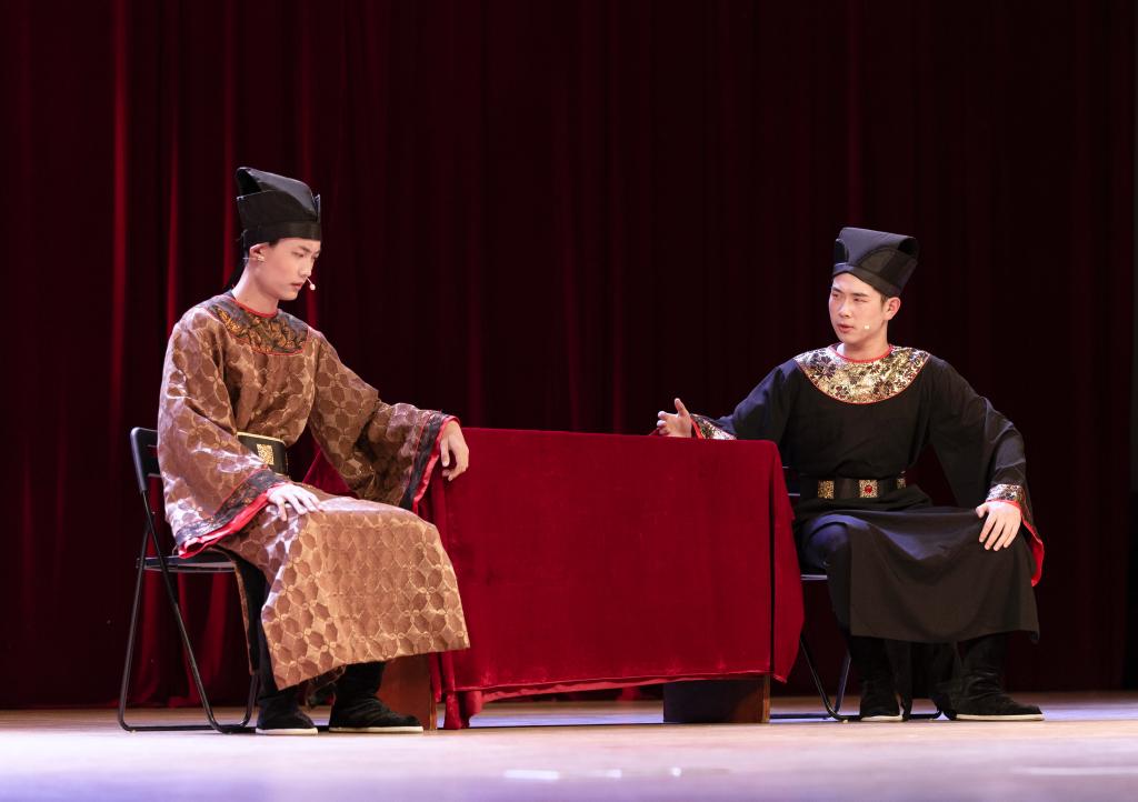 原创话剧《大明城墙》选取1366年明朝初建,以修筑城墙为主线,塑造了张子昂、宋阳明、沈万山、刘伯温、陆贤等群像,既歌颂清正廉洁、克己奉公的优秀品质以及为国分忧的民族担当精神,又赞扬工匠精神。本剧是我院金陵剧社演出第十三场,演员均来自我院17级二年级学生,他们已经是该剧的第三批演员。同学们利用课余时间仔细研读剧本,在刘老师的指导下,倾注的饱满的热忱,将历史故事与传统表现艺术巧妙融合,呈现了一场了更具感染力和冲击力的视听盛宴。