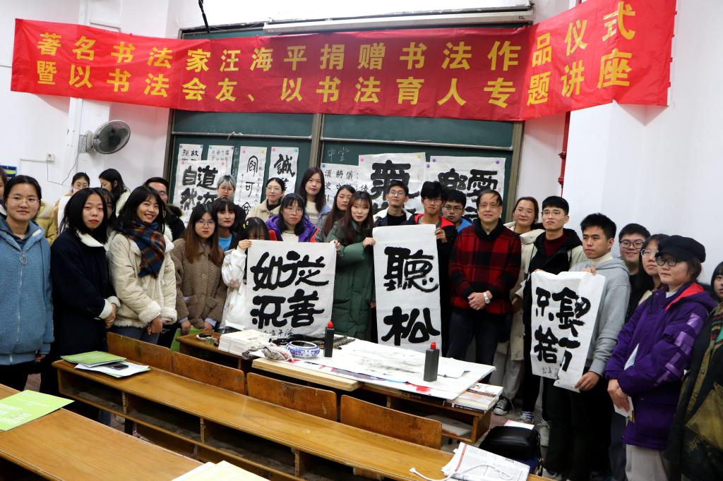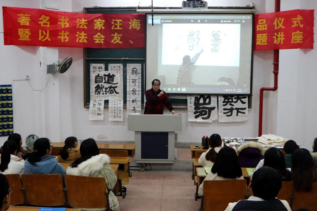 一笔一划,墨香缕缕,诉不尽的字字情深。12月9日下午2:30,在幕府校区农科楼114教室,WilliamHILL中国特邀书法家汪海平老师,开展了 以“书法会友,以书法育人”讲座,WilliamHILL中国党委书记吴轶军、院长张维亚、副书记周建峰、副院长赵步阳,学工办主任童明明及辅导员老师、学生代表参加了此次活动。吴书记担任活动主持。