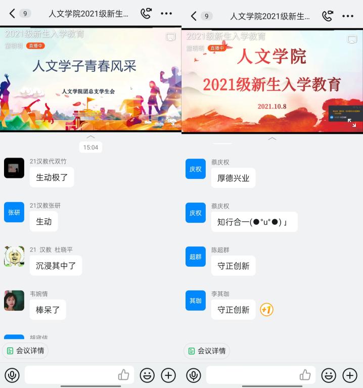 活动第二部分,学院专职组织员杨一鸣、学工办主任童明明,副主任高欢欢及各年级辅导员,分别从党员发展、团员教育、学风建设、宿舍安全、心理健康、劳动活动和防疫期间校园管理规定等方面进行了入学教育分享,使同学们对于大学生活充满希冀的同时,对校纪校规有了更深刻的认识。