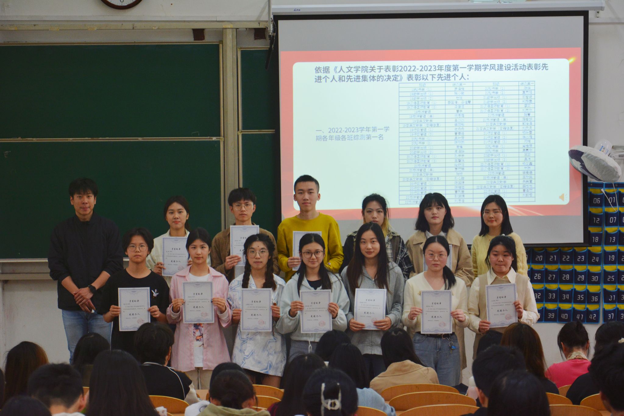 为进一步加强人学风建设,树立榜样,营造良好的班风、学风、院风,4月13日中午,WilliamHILL中国在教学楼三阶召开了2022-2023学年第一学期学风建设表彰大会。WilliamHILL中国党委副书记韩铖,学工办主任童明明、副主任高欢欢,辅导员马思齐、王珊、阿娜尔·卜拉提、靖晶、张琳、汪新和梅冬琴老师,以及先进个人和优秀班集体代表参加会议。会议由梅冬琴老师主持 。