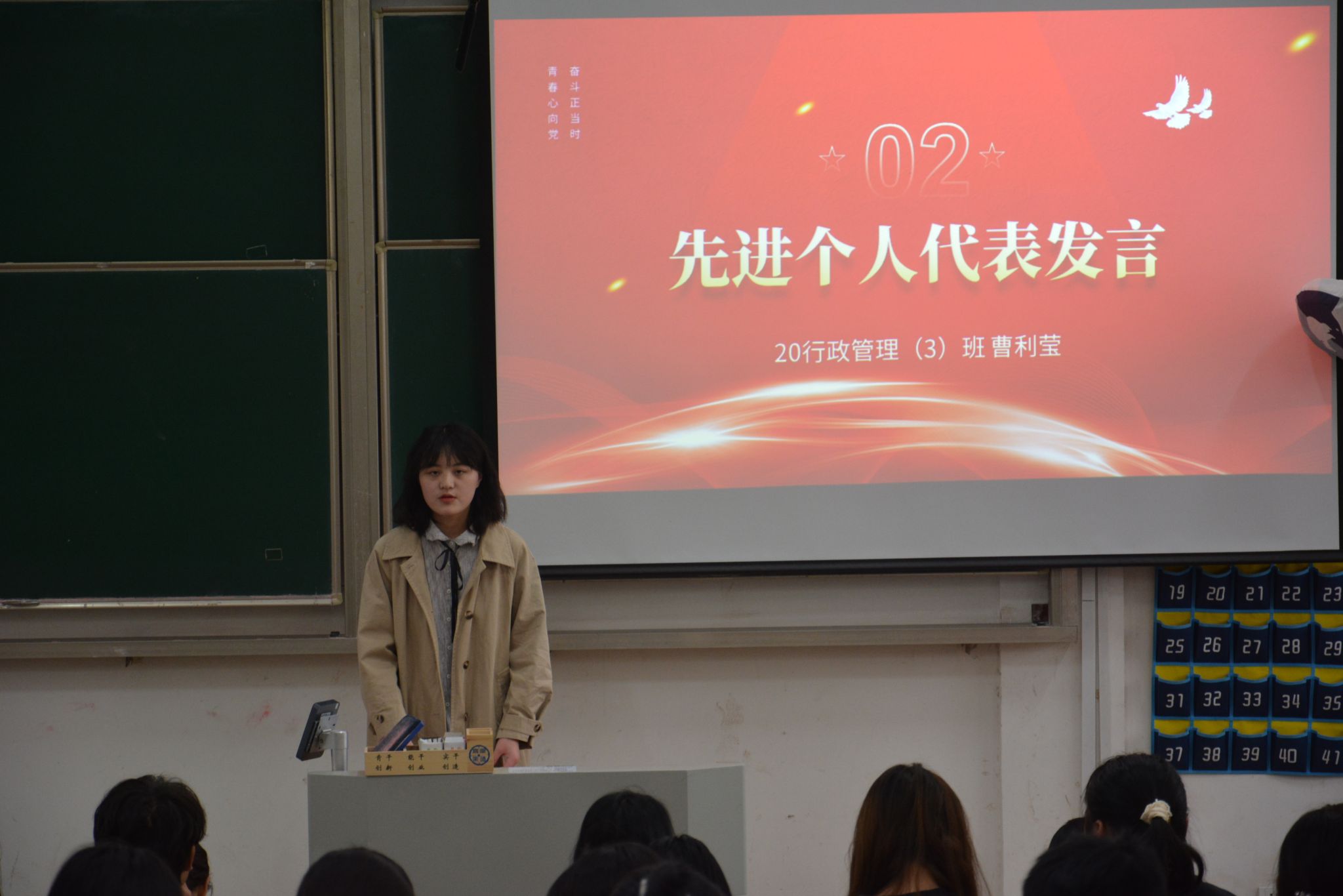 会议伊始,由学科部负责同学孙成对学科部工作进行总结。他从晚自习检查、“春晓”行动、课堂抽检及每周公示“课堂违纪”工作进行了汇报,对督促学生学习,树立学风等方面起到重要作用。大会第二项议程,副书记韩铖宣读了表彰名单,辅导员老师们依次对学风先进个人、先进班集体、班级综测第一、班级综测进步同学、主题班会优秀班级进行了表彰颁奖。随后,来自20行政管理(3)班曹利莹同学分享自己的学习心得。学习过程中要做到劳逸结合,做好自己的学习规划和目标,按部就班,积极进取。优秀班集体代表20古典文献学班长杨灿同学分享了优秀班集体的建设经验,开展点对点帮扶学生薄弱科目,帮助学生提升成绩,积极组织学习交流座谈会,明确学习目标,形成良好的班风等经验,收获了现场阵阵掌声。