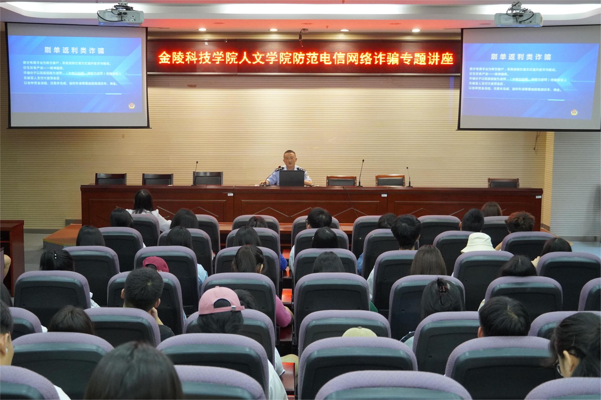 讲座伊始,金警官以实际案例为切入点,向同学们展示了诈骗团伙作案手段和设备仪器,提醒大家务必要高度重视和防范电信网络诈骗。接着,金警官依次播放了三段视频:《一个女大学生的36个小时》关于女大学生轻信网上刷单任务,向学生们科普了如何进行防范;《网络购物诈骗》视频清晰地展现了骗子的诈骗手法,以及个人信息如何被泄露,骗子如何把受害者一步一步骗进陷阱。金警官详细说明了大学生该如何应对此类诈骗;《“亲人”的来电》讲述了冒充熟人诈骗事件,面对这类诈骗,切记不轻信、不转账,要见面或者电话视频核实。此外,金警官重点介绍了“帮信罪”的特点,提醒广大同学切莫出借、出租、出售电话卡、银行卡和通讯社交账号、支付账号等,避免成为犯罪分子的帮凶。