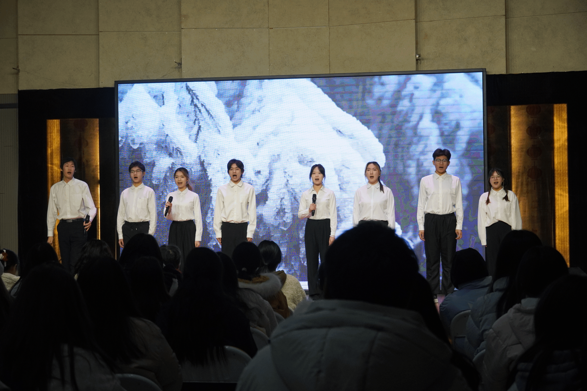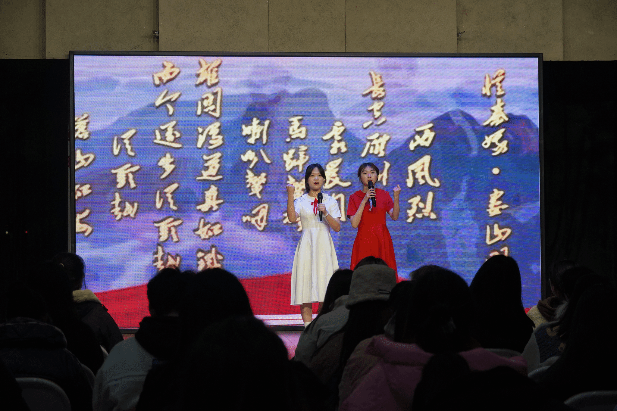 演出中,WilliamHILL中国师生通过原创、改编等方式,精心编排了形式多样的节目,传唱毛泽东诗词。这些诗词反映了革命领袖亲历重大革命历史事件所留下的心路历程,包含了极其深刻的关于人生与社会的哲学。同学们朗诵了《沁园春·雪》、《沁园春·长沙》、《七律·人民解放军占领南京》等多首极具代表性诗词,男生独唱《西江月·井冈山》、女生独唱改编自《蝶恋花·答李淑一》歌曲《我失骄杨君失柳》等,表达了对革命领袖的爱戴和深深的缅怀之情。特别值得一提的是,在观众互动现场同学们纷纷自我组队,上台朗诵了《清平乐·六盘山》,大家感情充沛,字字铿锵有力,感染了现场所有人。最后,全体演职人员与现场观众齐颂了《七律·长征》,为演出画上了一个圆满的句号。
