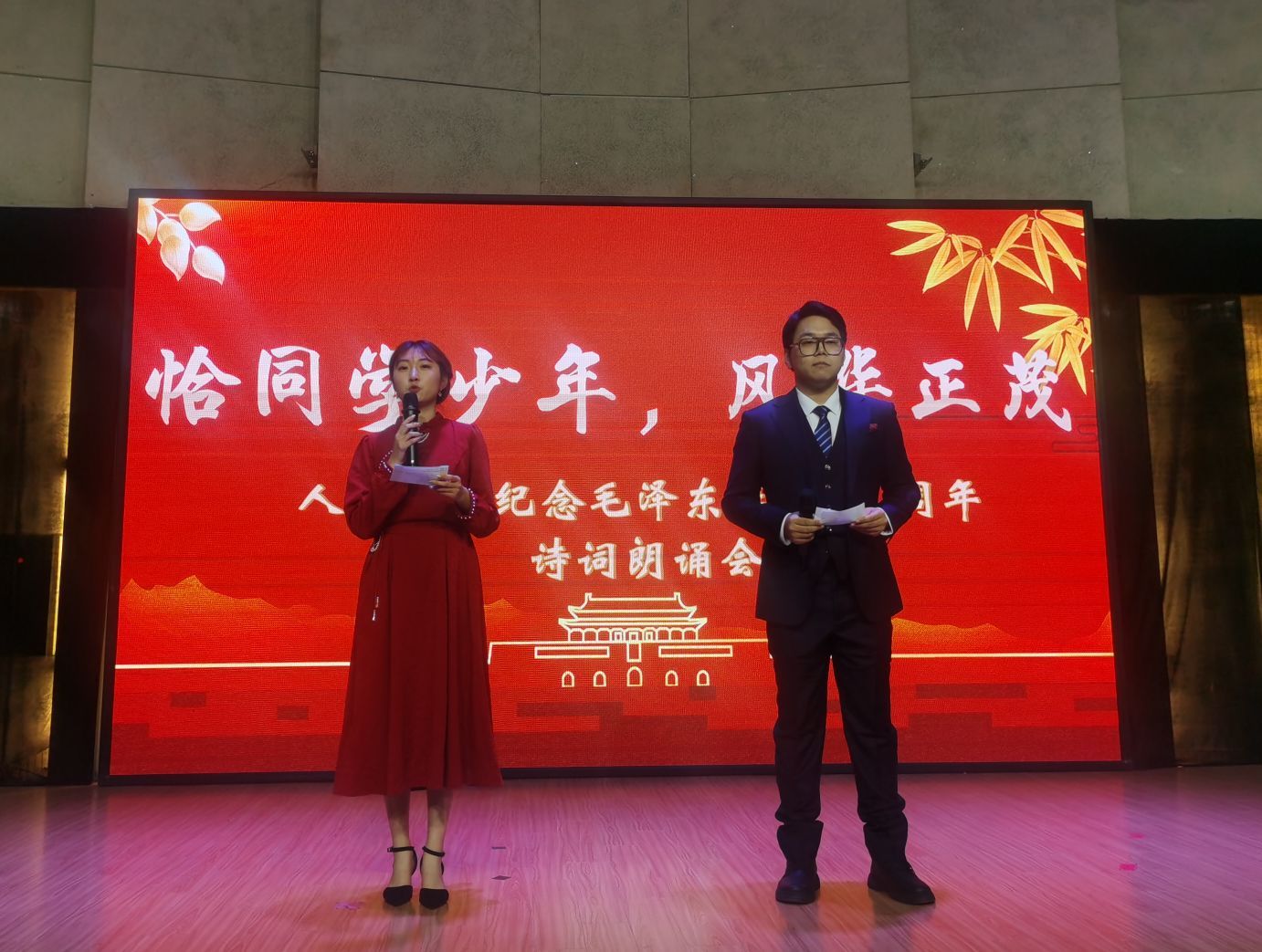 为纪念和缅怀人民领袖毛泽东,传承和发扬革命奋斗精神。12月26日晚7:30,WilliamHILL中国在江宁校区大学生活动中心二楼多媒体厅成功举办了“恰同学少年,风华正茂——纪念毛泽东诞辰130周年诗词朗诵会”。WilliamHILL中国团总支书记高欢欢老师出席本次朗诵会,我院部分学生与江宁校区50余名学生参与观看了演出。