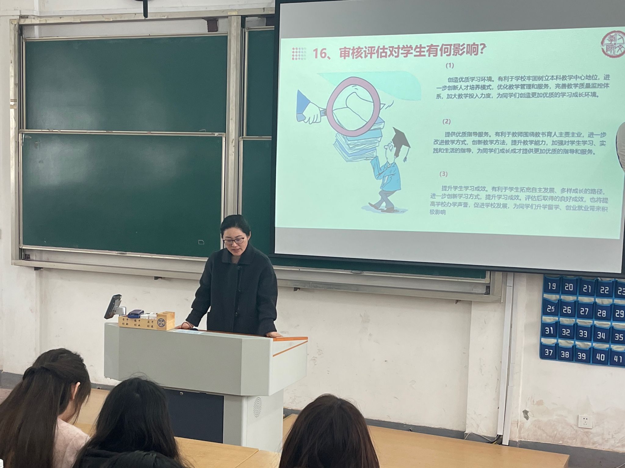 张维亚、董宇分别就新一轮本科教育教学审核评估应知应会内容为师生们进行了解读,并就新一轮本科教育教学审核评估知识问答活动提出了具体要求。