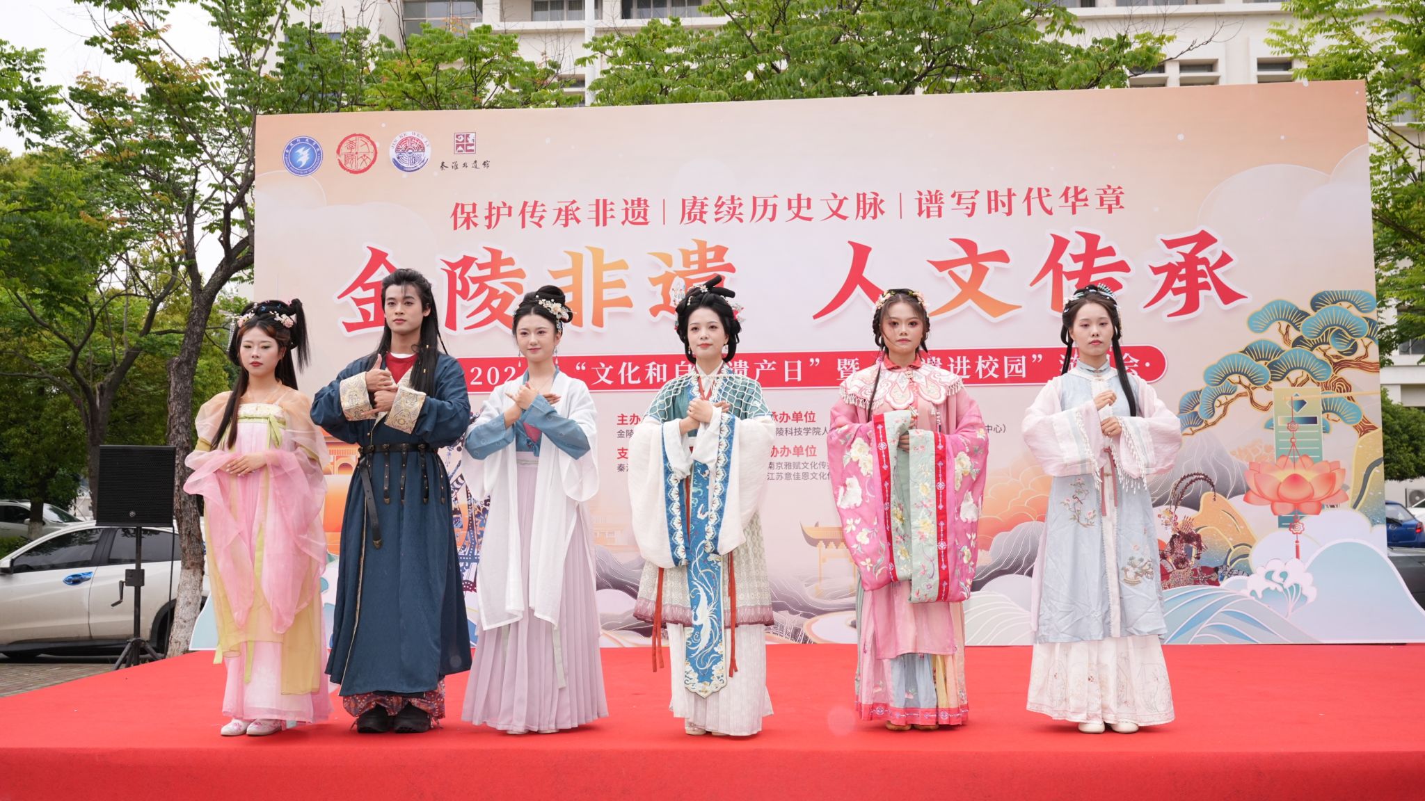 本次非遗宣传主题是“保护传承非遗 赓续历史文脉 谱写时代华章”,游园会通过遇见非遗、对话非遗、造趣非遗、玩转非遗四个板块的活动,让全校师生在体验南京非遗技艺、品味金陵非遗美食、欣赏中华传统服饰中感受非遗的独特魅力,体会六朝古都和现代南京的文化交融。