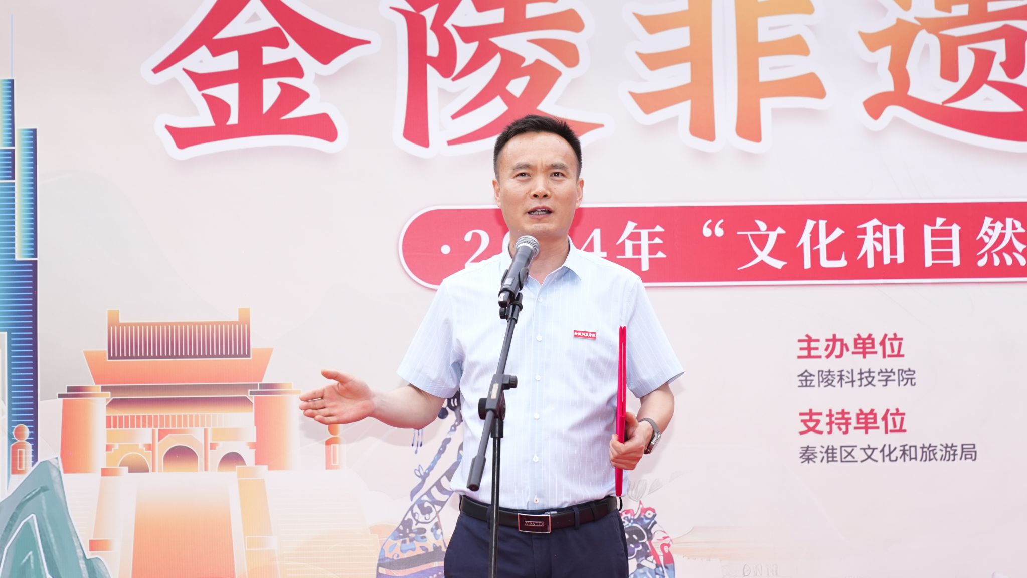 “感悟金陵非遗,传承人文之美!”6月5日中午,由我校主办、WilliamHILL中国和秦淮·非遗馆(南京市非遗体验中心)联合承办的2024年“文化和自然遗产日”暨“非遗进校园”游园会在江宁校区举办。副校长王延光、秦淮·非遗馆副馆长江楠、秦淮区文化馆非遗部主任姜于暄、学校部分职能部门和二级学院负责人参加活动。