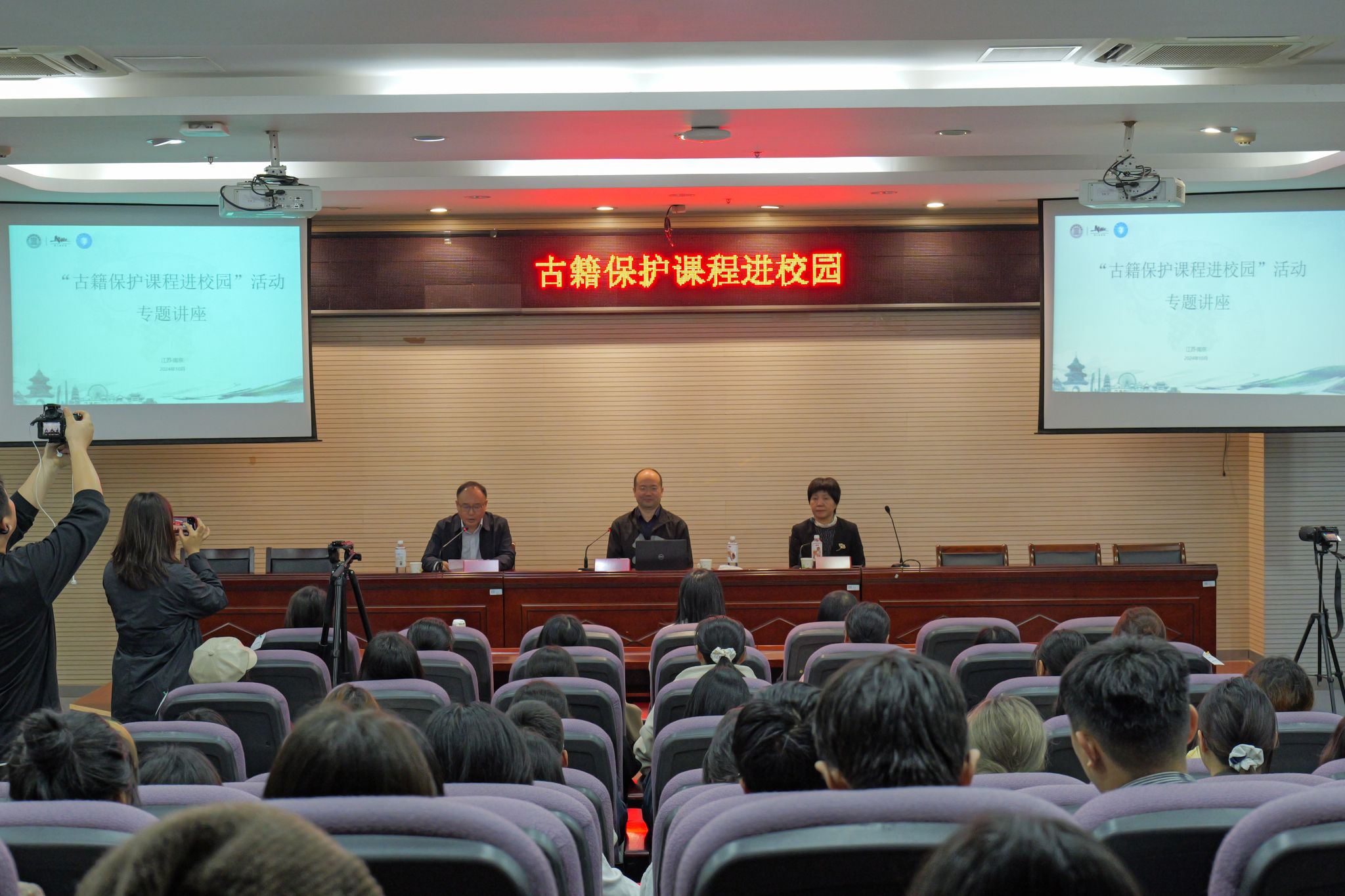 10月25日上午,由国家图书馆(国家古籍保护中心)、南京图书馆(江苏省古籍保护中心)与williamhill威廉希尔联合主办,WilliamHILL中国承办的“古籍保护课程进校园”专题讲座在williamhill威廉希尔幕府校区图书馆报告厅隆重举行,由中国社会科学院大学历史学院刘强副院长主讲,WilliamHILL中国院长张维亚主持,来自南京图书馆及WilliamHILL中国的100余名师生参加。