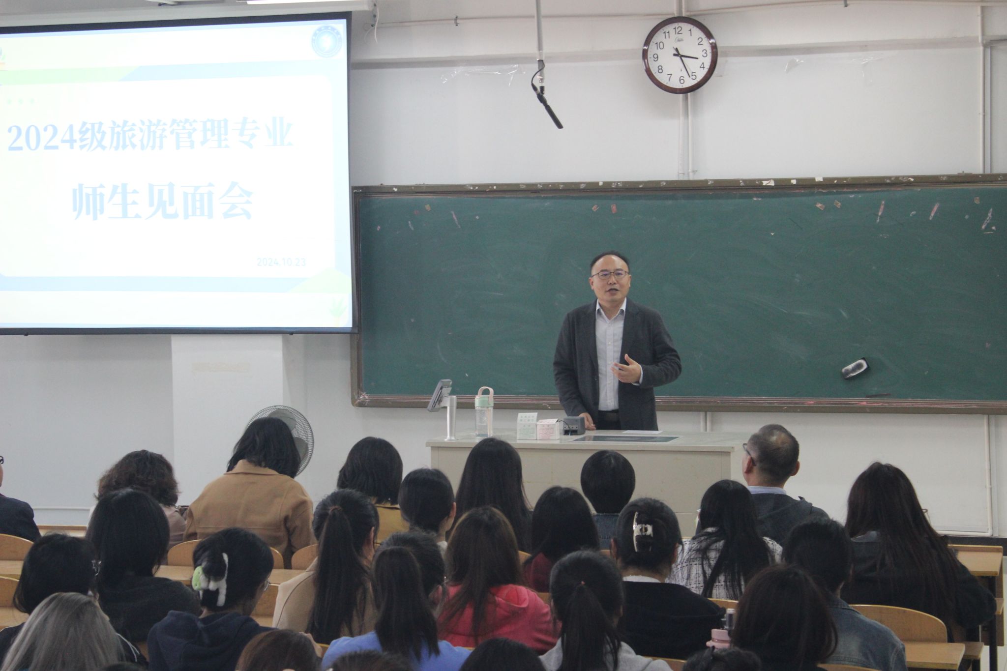 院长张维亚首先回顾了旅游管理专业的发展历程和取得的学术成就,并殷切希望新同学珍惜宝贵的大学时光,勤恳学习,积极参与学术研究和实践活动。旅游管理专业系主任汤澍则从专业的课程设置、培养目标和未来发展前景进行了详细介绍,强调了理论学习与实践锻炼相结合的重要性。新生班主任代表戴欣佚老师为新同学们送上了新学期祝福,希望大家在这里更快地成长收获。