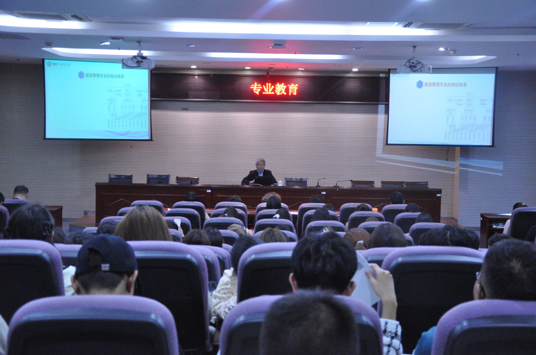 讲座伊始,周春林教授围绕旅游管理专业当前发展态势与未来趋势,从六个维度进行全面深入的剖析。他通过详实的数据直观展示了旅游业在国民经济与社会发展中的重要性。旅游业是新兴的战略性支柱产业和具有显著时代特征的民生产业、幸福产业。周教授强调,面对旅游业的创新与变革,同学们须扎实掌握基础理论,熟悉行业发展动态,培养自主学习能力。他还就大学学习教育的核心价值、资源利用、学习习惯养成及时间管理等方面,为新生提供了宝贵建议。关于职业规划与自信建立,周教授不仅解答了学生的疑惑,还分享了多个成功案例。讲座尾声,张院长对旅游管理的莘莘学子提出希冀,希望大家以此次讲座为契机,制定更加清晰的学习发展规划,树立生涯规划意识,成为适合新时代发展的高素质应用型旅游人才。